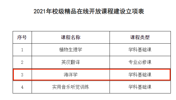 《海洋学》:2021年校级精品在线开放课程立项