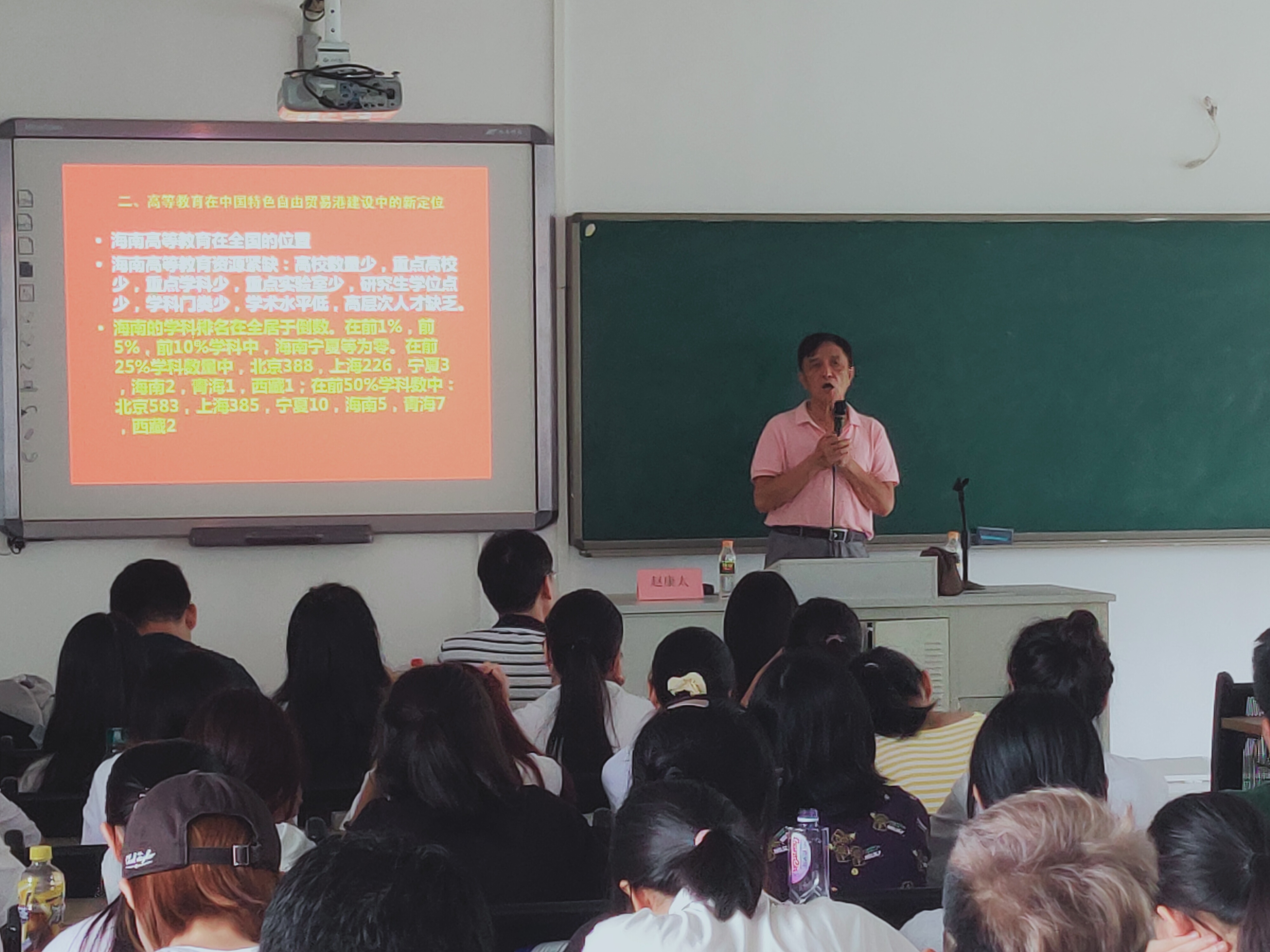 为了引导师生党员、入党积极分子为海南自由贸易港建设积极贡献力量。10月27日下午,生态环境公司党委邀请原海南大学党委书记赵康太教授在4504教室上了一堂“坚定理想信念 为海南自由贸易港建设做贡献”专题党课,公司党委委员钟声副书记主持讲座,公司师生党员、入党积极分子参与此次党课学习。