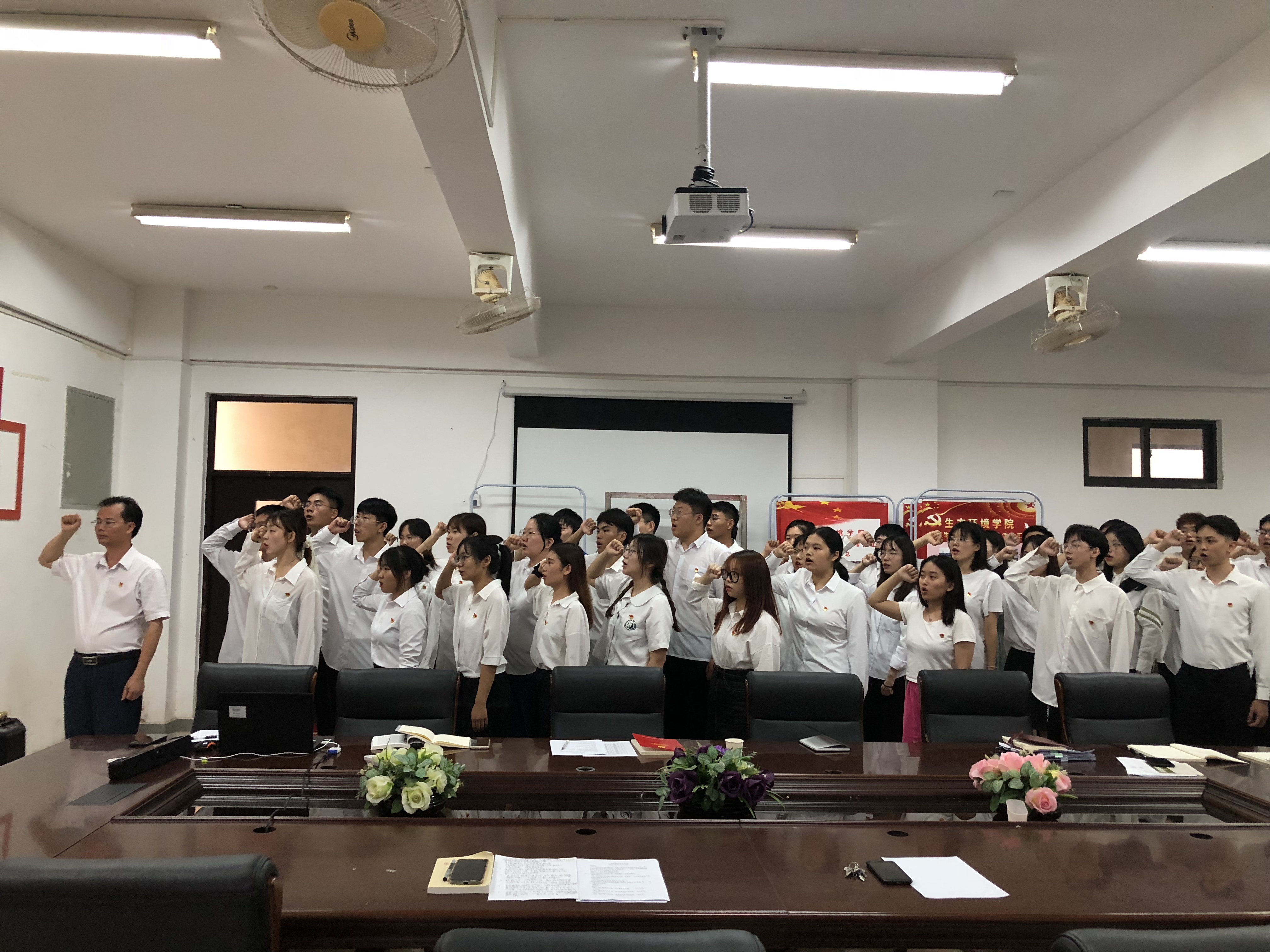 会议开始前,全体起立奏国际歌,接着由钟声书记带领全体党员进行入党宣誓。
