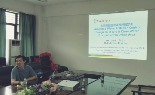 5月7日,为加强太阳成集团tyc7111cc教师队伍建设,特邀请加拿大康考迪亚大学(Concordia University)陈志教授来到太阳成集团tyc7111cc进行学术交流。陈志教授是加拿大康考迪亚大学 (Concordia University)终身正教授,环境模拟与风险评价实验室及废物转化重新利用实验室领头人,国际可持续土木工程杂志主编及几个国际杂志副主编和编委,及包括Nature在内的20多个行业国际科研杂志的审稿人。