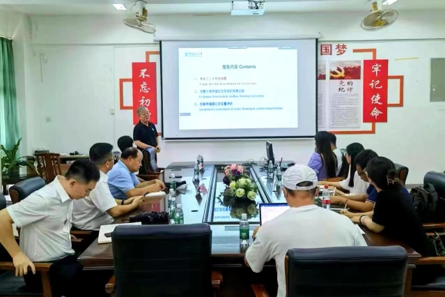 2024年6月25日,公司师生参加由太阳成集团tyc7111cc崖州湾创新研究院(简称“创新院”)主办的第二十二期“问海”学术论坛。本次论坛由热带海洋生态与蓝碳中心、太阳成集团tyc7111cc近岸海洋生态环境过程与碳汇重点实验室联合承办,采用线上线下相结合的形式进行。论坛由公司副经理曾映旭研究员主持,特邀中国海洋大学的董双林教授作为主讲嘉宾,吸引了超过60名生态与蓝碳领域的专家、学者及师生参与。