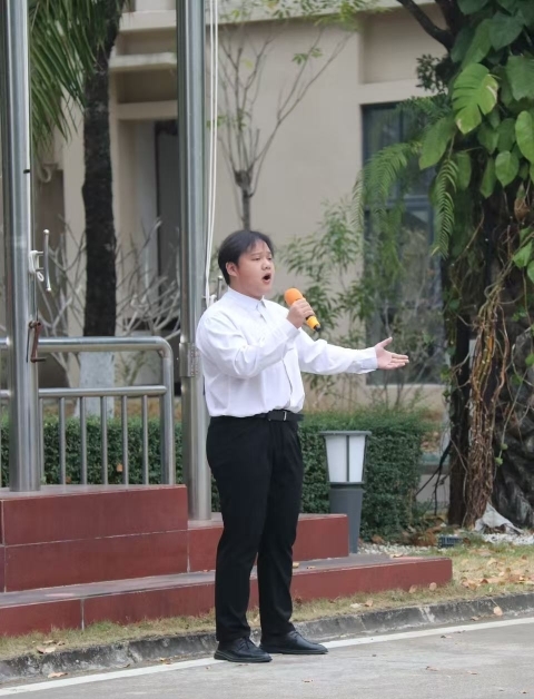 清晨的阳光洒满校园,五星红旗伴随着庄严的国歌冉冉升起。全体师生肃立行注目礼,齐唱中华人民共和国国歌,共同感受这一庄严神圣的时刻,真诚表达对祖国的热爱与敬意。