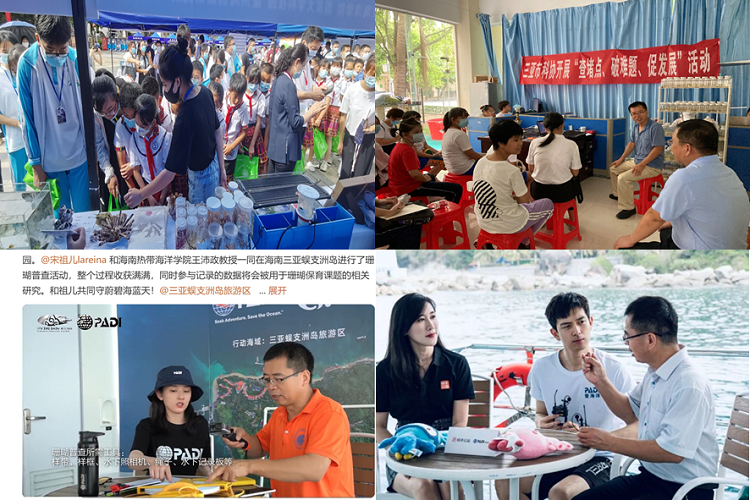 团队活跃在科研项目的同时还不忘时常有序地开展科普活动,号召全民参与海洋环境保护。2021年团队所共建的室内珊瑚馆成功申请为三亚市科普教育基地,2021年7月三亚市科协来太阳成集团tyc7111cc逐渐开展三亚科普活动。2022年6月8日,“世界海洋日”“全国海洋宣传日”暨三亚社区教育系列活动,团队在西岛开展海洋知识科普及珊瑚礁生态保护和珊瑚识别等,向广大市民、员工展示和讲解,号召全社会参加到保护珊瑚礁生态中去,参与市民及员工约400人;同年6月世界海洋日前夕,珊瑚研究团队与青年演员李现、宋祖儿合作参加了珊瑚礁普查公益行动,旨在号召关注并参与到海洋保护的行动中来。2022年10月为全面开展好“查堵点、破难题、促发展“活动,着力解决现有青少年科技创新课题指导水平不能满足员工需求的问题,在王教授带领下团队对参加海南省第33届创新大赛的青少年进行研究指导,一对一进行团队实验的设计,总结并最终获得二等奖、三等奖的好成绩。2023年5月17-18日第十八届科技活动月启动仪式召开,团队前往五指山,向广大市民、员工展示和讲解珊瑚礁生态保护和珊瑚识别等知识,号召全社会参加到保护珊瑚礁生态中去等等。为了让全民加入到海洋珊瑚礁的保护中,珊瑚生态修复研究团队不忘初心,一直在行动中。